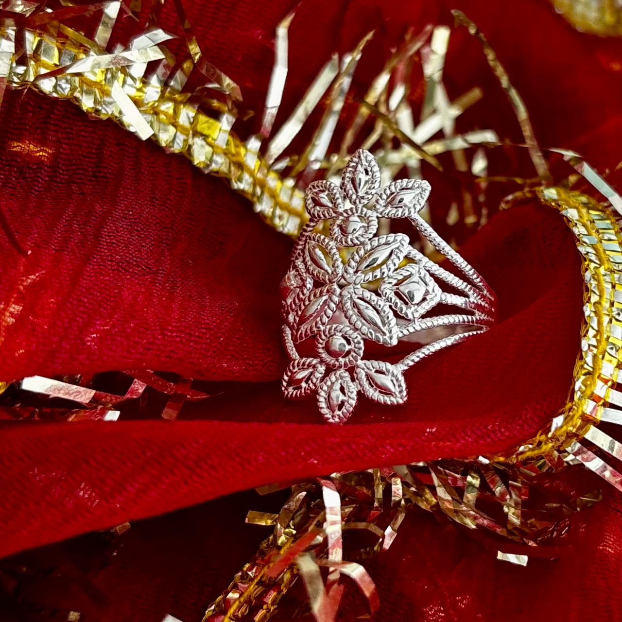 Grand Floral Bloom Cocktail Ring - Festive Silver Tone Statement Piece