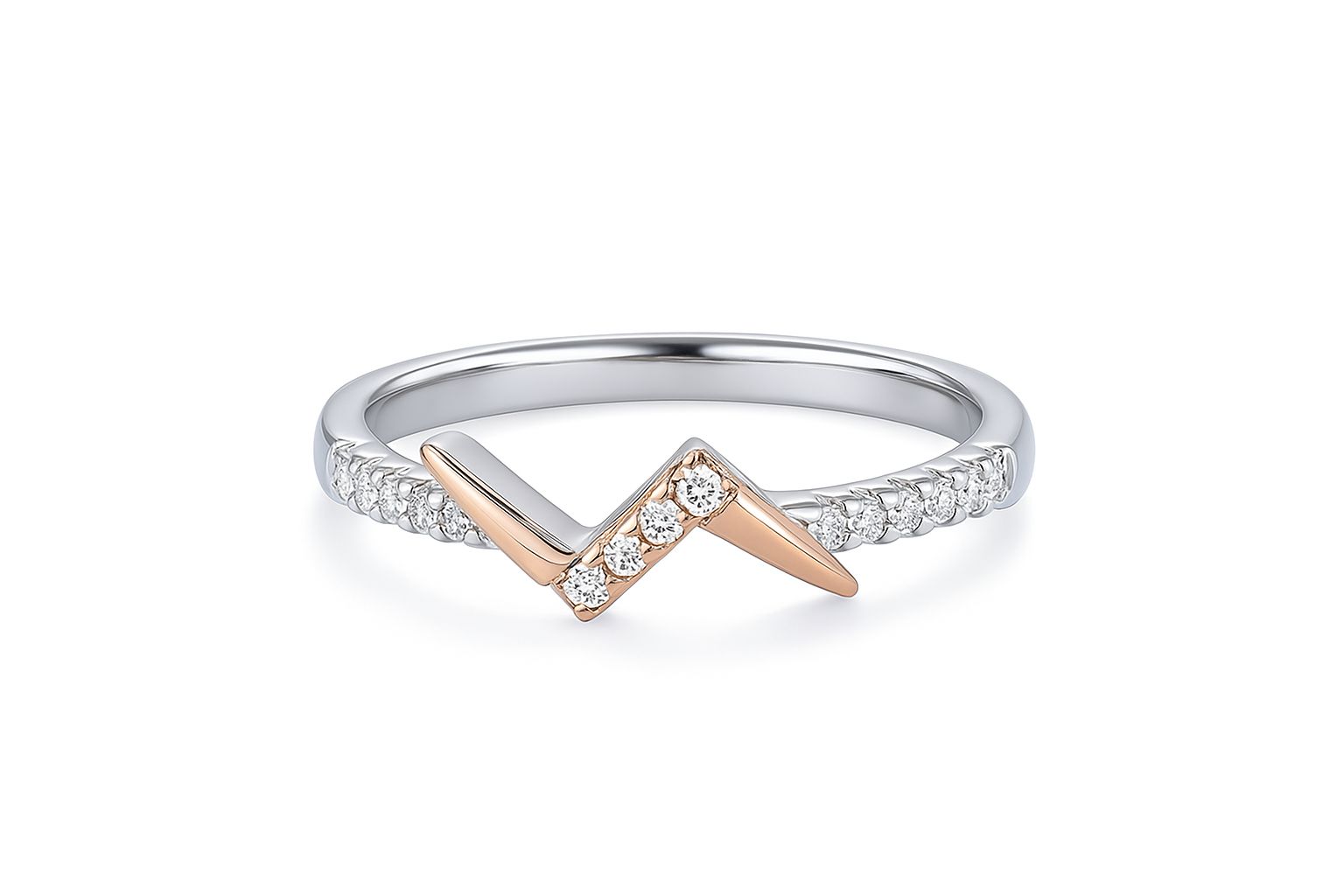 Elevate your style with this chic silver ring, featuring a lighting personality. the striking chevron design adds a contemporary flair, while the delicate stones accents along the band create a stunning sparkle that catches the light from every angle